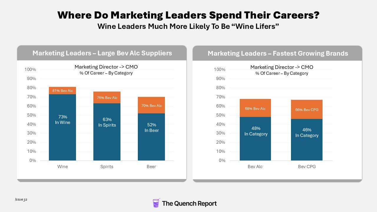 So I went to LinkedIn and started pulling data. Do wine marketing leaders spend a disproportionate share of their careers in wine compared to leaders in other high-growth beverage categories?
